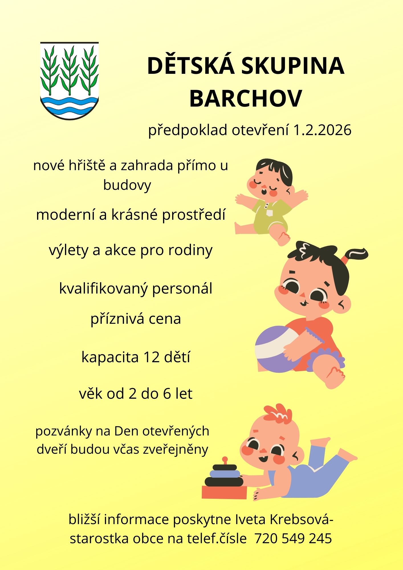 Otevření dětské skupiny předpokládáme od 1. 2. 2026
