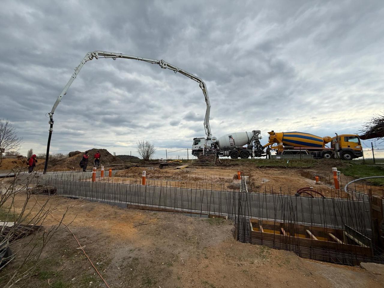 Výstavba dětské skupiny zdárně pokračuje, ve středu 9. 4. 2025 probíhalo betonování ztraceného bednění - viz foto.